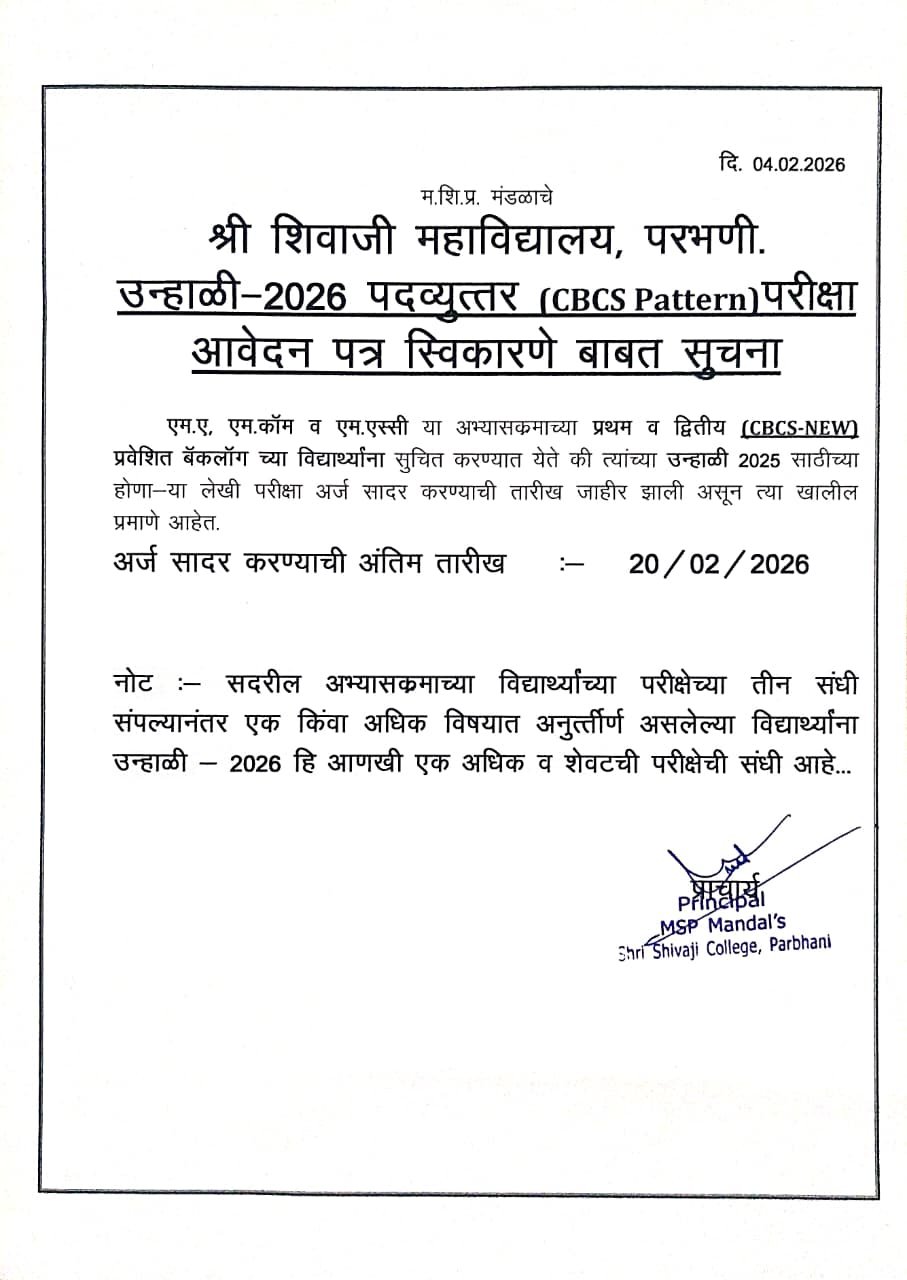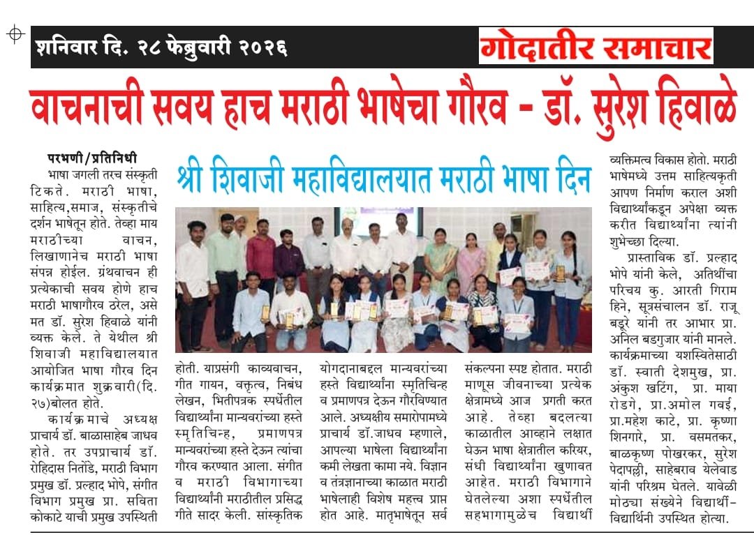At Shri Shivaji College Parbhani, we blend rigorous academics with a dynamic learning environment, empowering students to excel both inside and outside the classroom. Join us and discover where learning truly meets excellence.