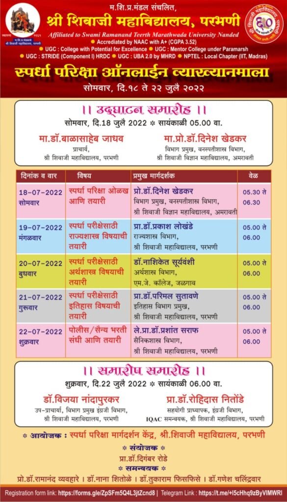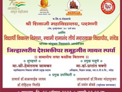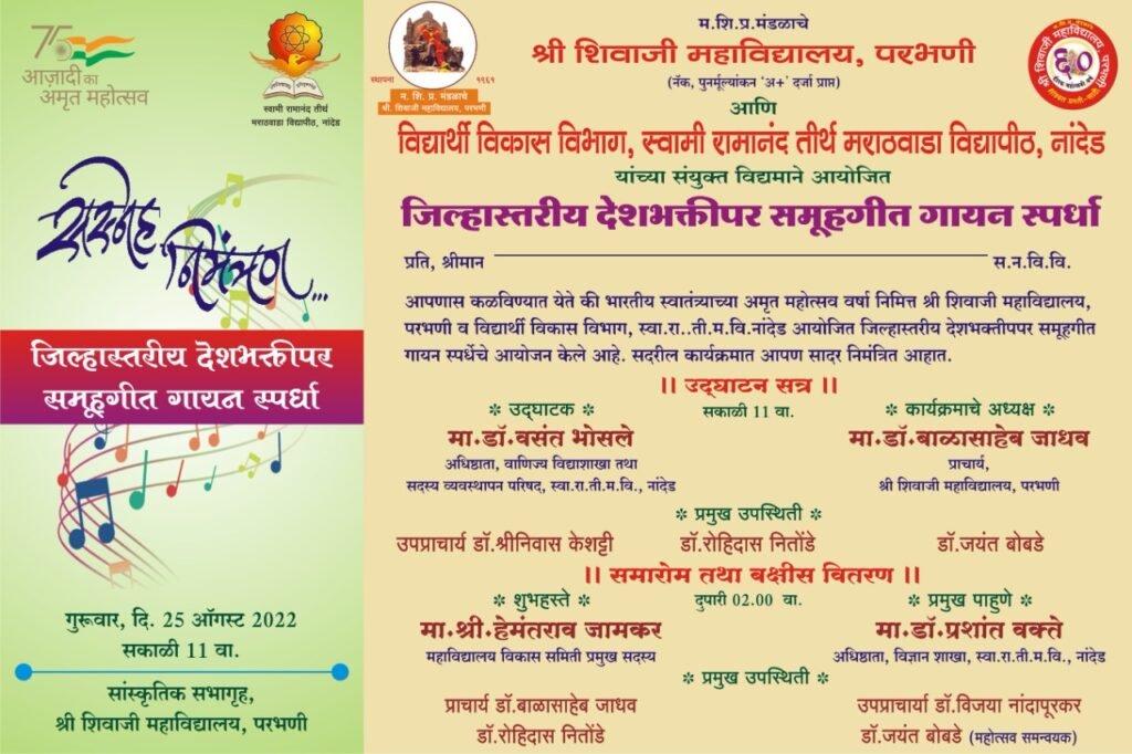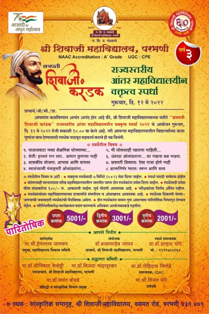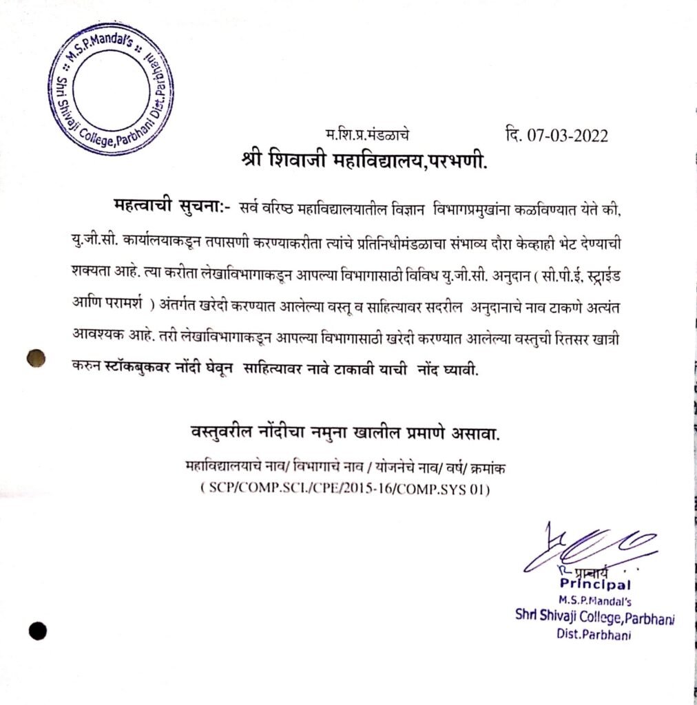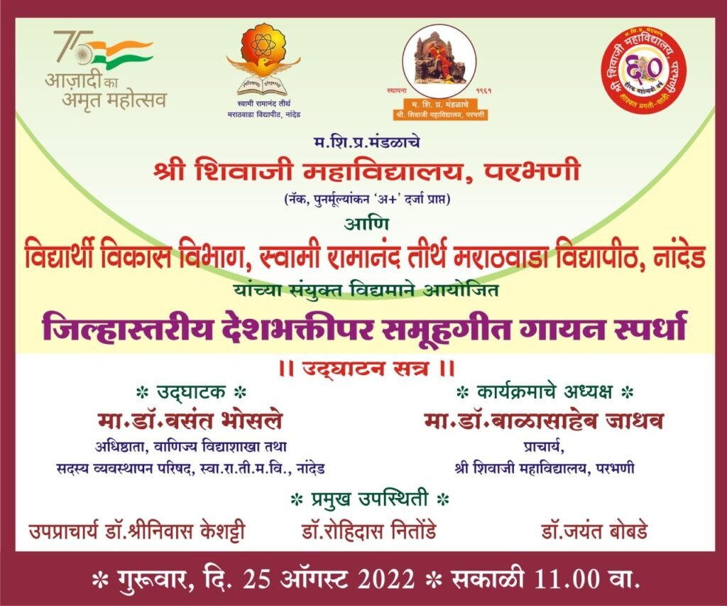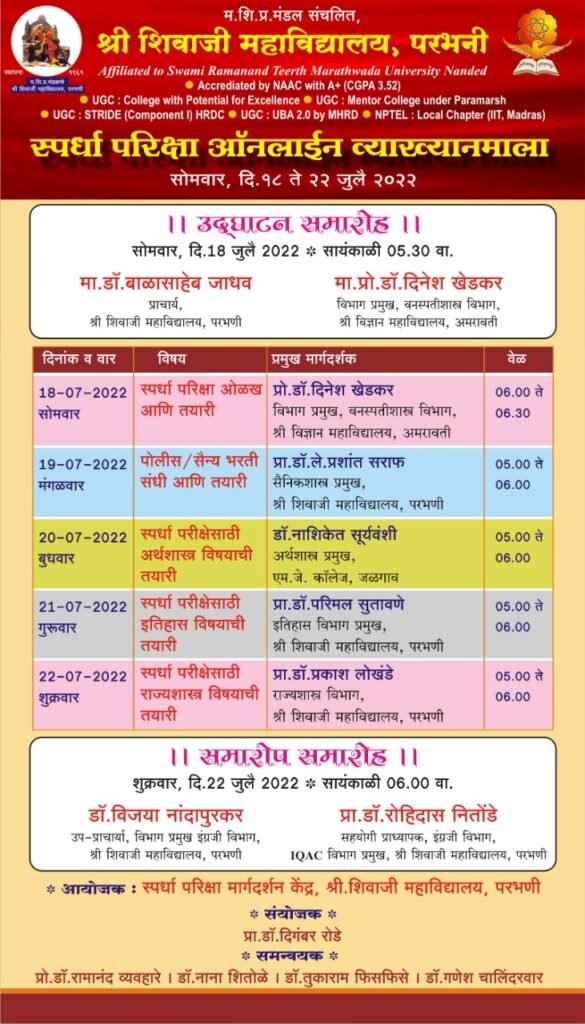 Affiliated to Swami Ramanand Teerth Marathwada University, Nanded NAAC Accreditation: A+ grade UGC : CPEDBT Star College, STRIDE, Paramarsh
