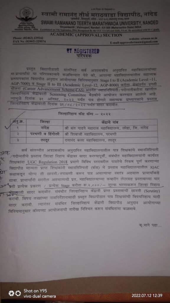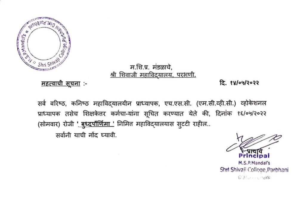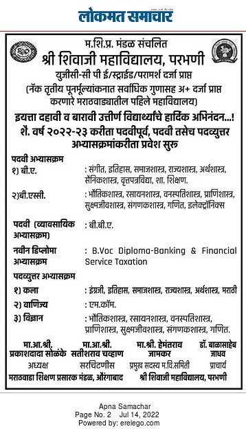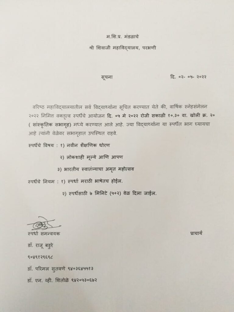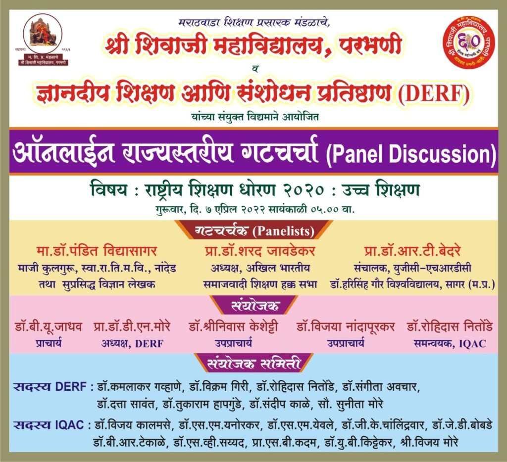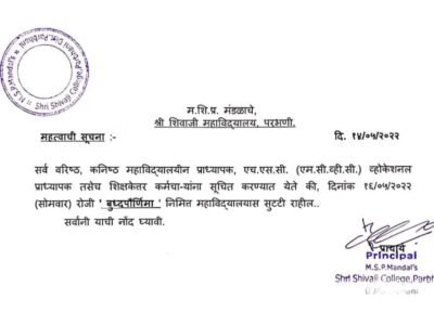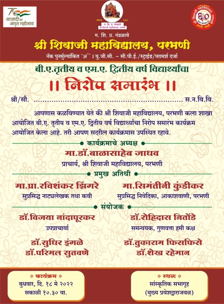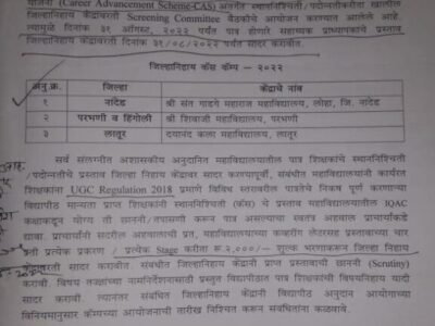 Affiliated to Swami Ramanand Teerth Marathwada University, Nanded NAAC Accreditation: A+ grade UGC : CPEDBT Star College, STRIDE, Paramarsh